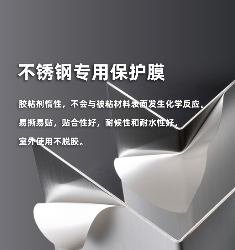 配合行業內先進的生產技術力量,為設施完備的保護膜生產基地,可巧妙地為您解決各種復雜的難題,為您的產品提供符合高水準的保護。公司推行科學的管理模式,建立起有效的運營系統,以研發制造為核心,打造表面保護的整體解決方案,產品應用于彩鋼板、鋁材、不銹鋼、塑料、電子產品、家電用品、陶瓷、馬賽克、家具、玻璃、地毯以及各類建筑、裝飾材料等行業,具有易撕易貼、膠面不轉移、剝離無殘膠等特點,得到廣大客戶的一致好評。特別是在不銹鋼保護膜、鋁板保護膜領域不斷開拓追尋,逐步成就核心技術優勢,市場占有率節節攀升。